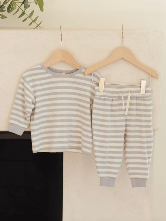 Blue Vintage Stripe Romper with Contrast Sleeve