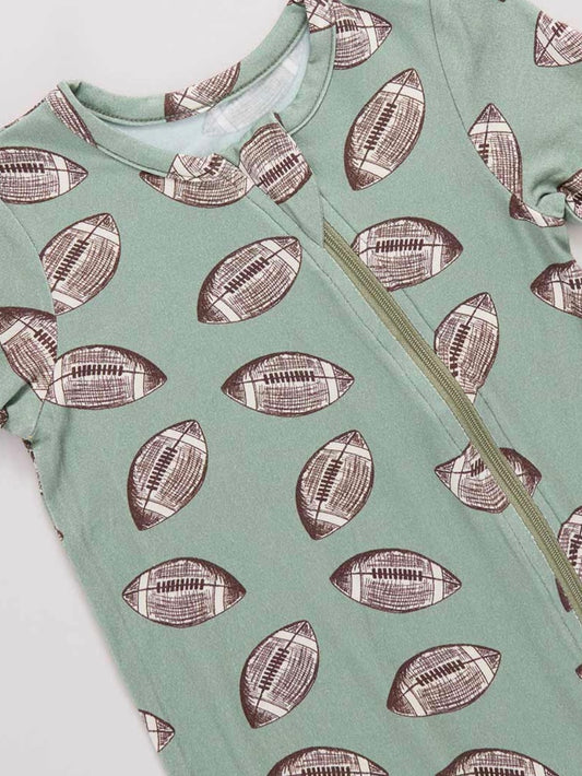 Baby Bamboo Romper - Green Flying Footballs