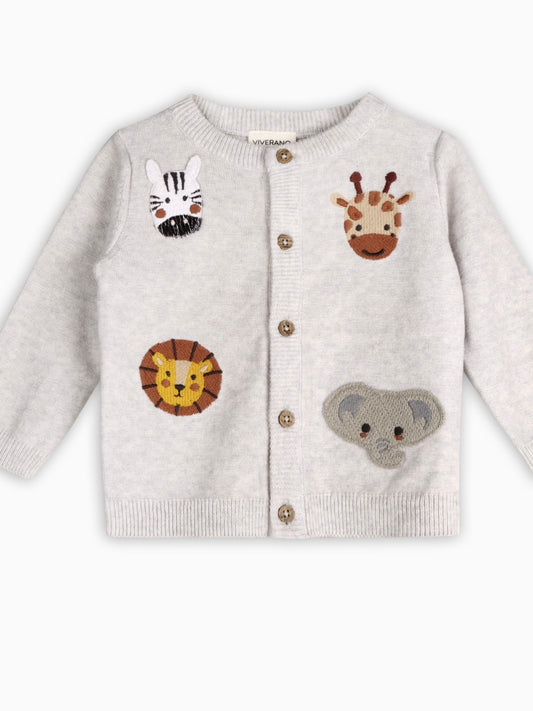 Animal Friends Embroidered Cardigan Sweater - Grey Heather