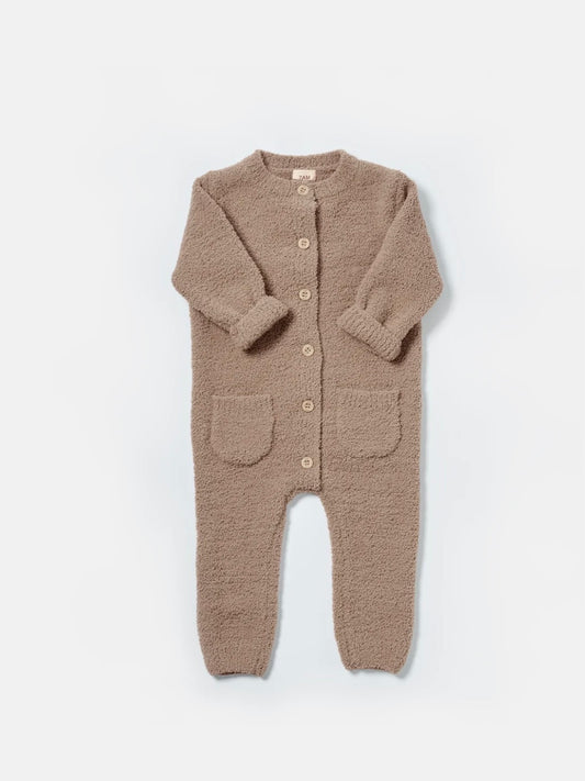 Long Sleeve Fuzzy Jumpsuit - Pecan