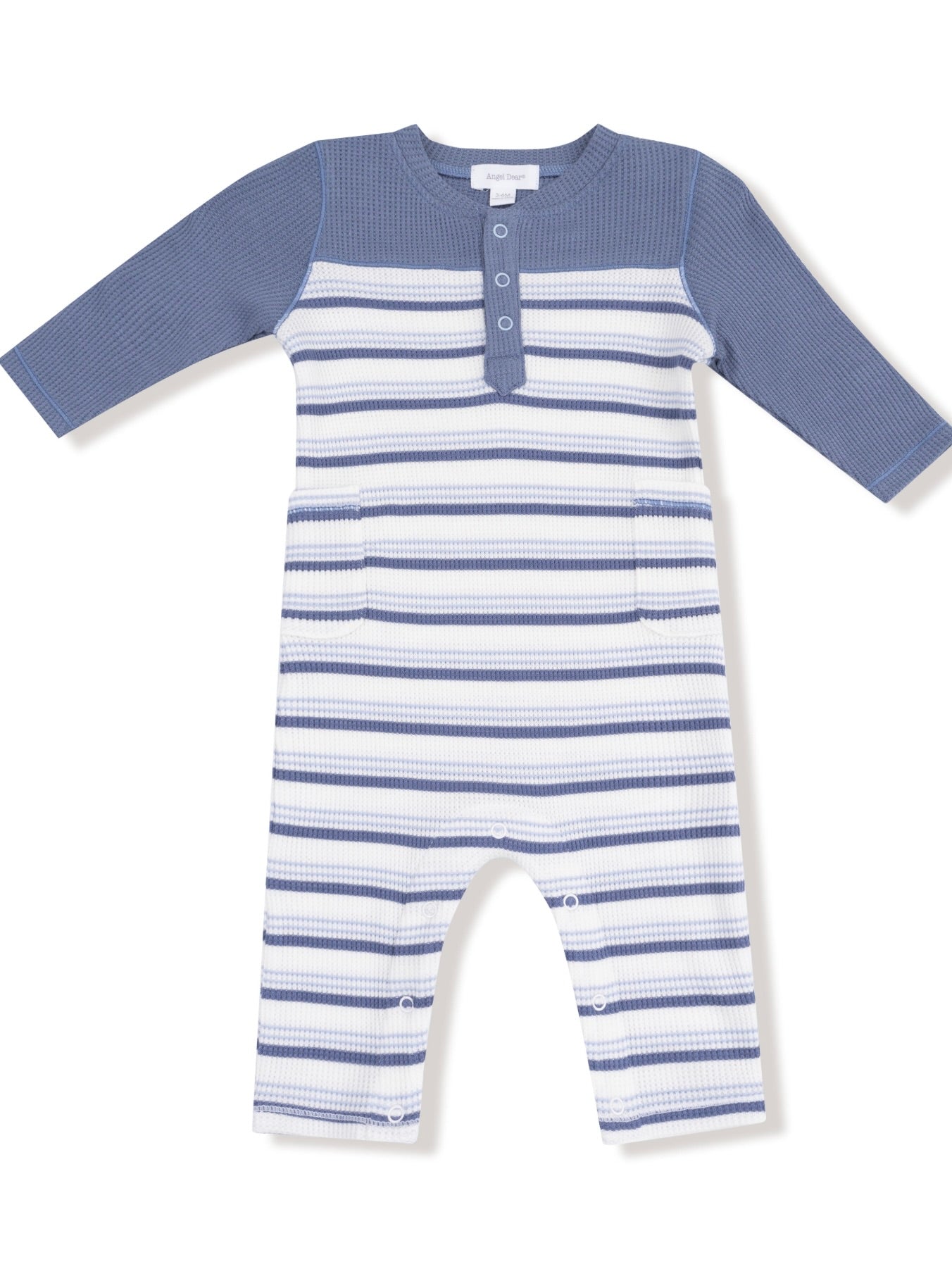 Blue Vintage Stripe Romper with Contrast Sleeve