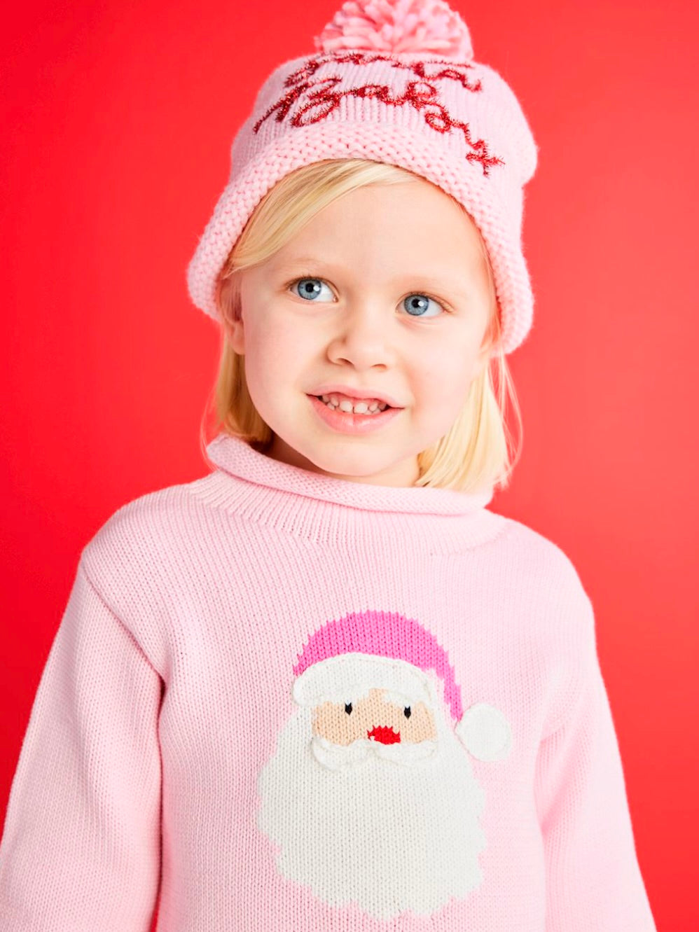 Roll Neck Sweater - Pink Santa